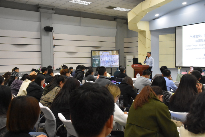 论道开始前,王金元教授对中和论道的涵义进行简要概括,同时感谢社会各界对中和论道的支持并对我校中和论道创始人李朝东教授、主要赞助中和集团洪涛董事长表示感谢。本次汇报内容包括四个方面:气候变化概述、潜在植被对气候变化的响应、国际社会对气候变化的应对以及地理信息技术与科学简介。