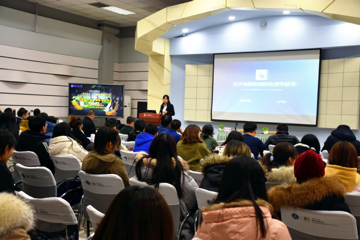 她在报告中主讲的第三部分是“人应当如何对待动物”。她列举了六种对待动物的种际义务理论,并着重从后果主义和内在价值角度进行讲解。第一种义务理论是“动物解放论”,代表人物是彼得·辛格。动物解放论者认为具有感觉能力的存在物至少拥有体验愉快避免痛苦的利益,必须把动物的苦乐利益考虑在内。第二种义务理论是“动物权利论”,动物权利论者认为人与动物是平等的,感觉是拥有道德权利的充分根据,感受苦乐的能力是获得道德关怀的充分理由,动物的利益是环境道德的基础。接下来,她对“强式动物权利论”和“弱式动物权利论”进行阐述,强式动物权利论认为,动物也拥有值得我们予以尊重的天赋价值,动物身上的这种价值赋予了它们一种道德权利,即不遭受不应遭受的痛苦的权利,这种权利决定了我们不仅仅把动物当作一种工具来对待。弱式动物权利论者认为,人的权利与动物的权利是有差别的,人类的权利范围要广泛得多,并且是一种较强的权利。最后,她介绍了一种“废除主义”的动物权利,他们认为接受动物权利原则意味着禁止用动物做实验、禁止使用动物做苦力、禁止狩猎等。