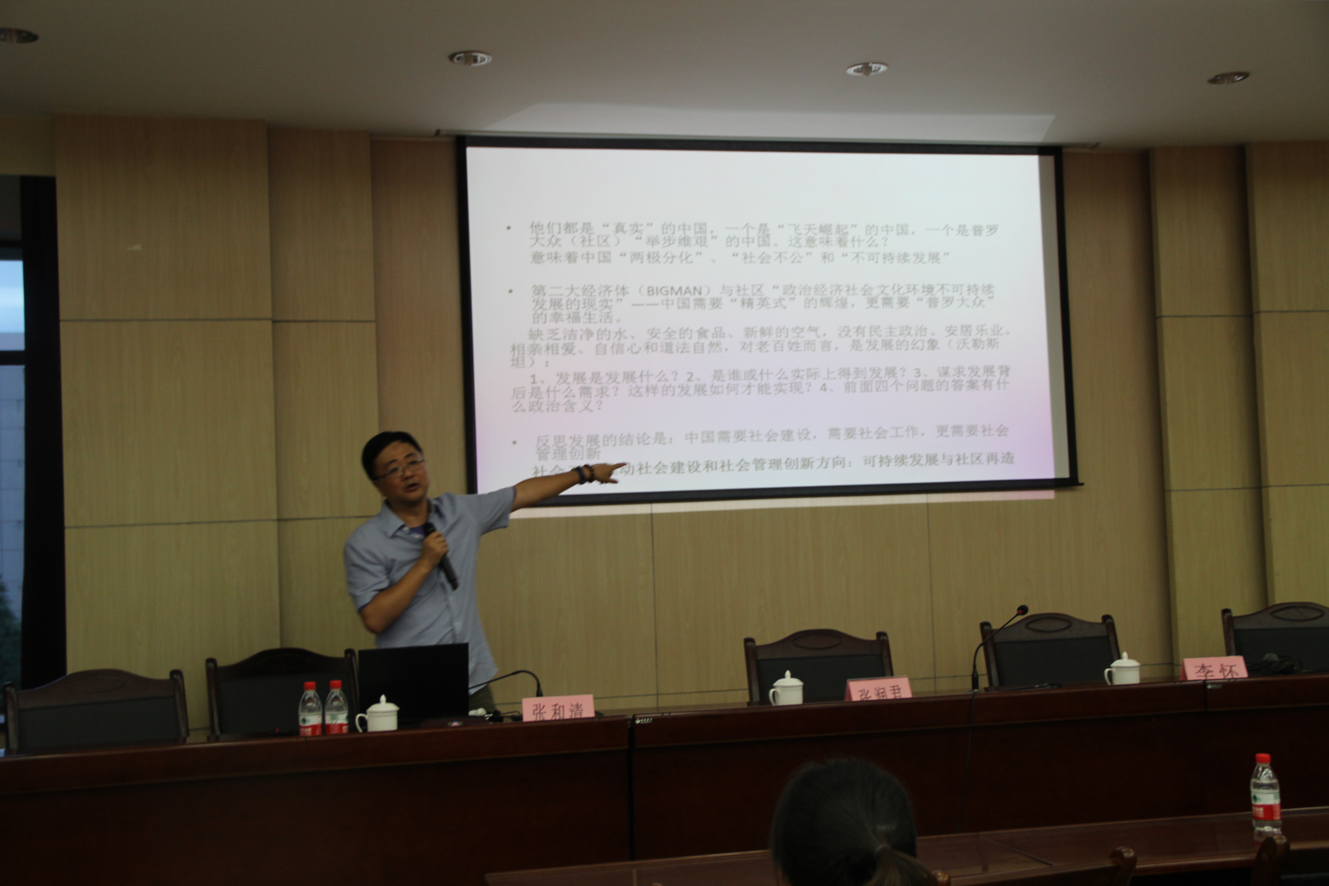 邀请,中山大学社会工作系主任张和清教授在教学10号楼D区四楼多功能报告厅作了一场题为“社会工作与社区可持续发展”报告,报告会由鲸鱼体育直播