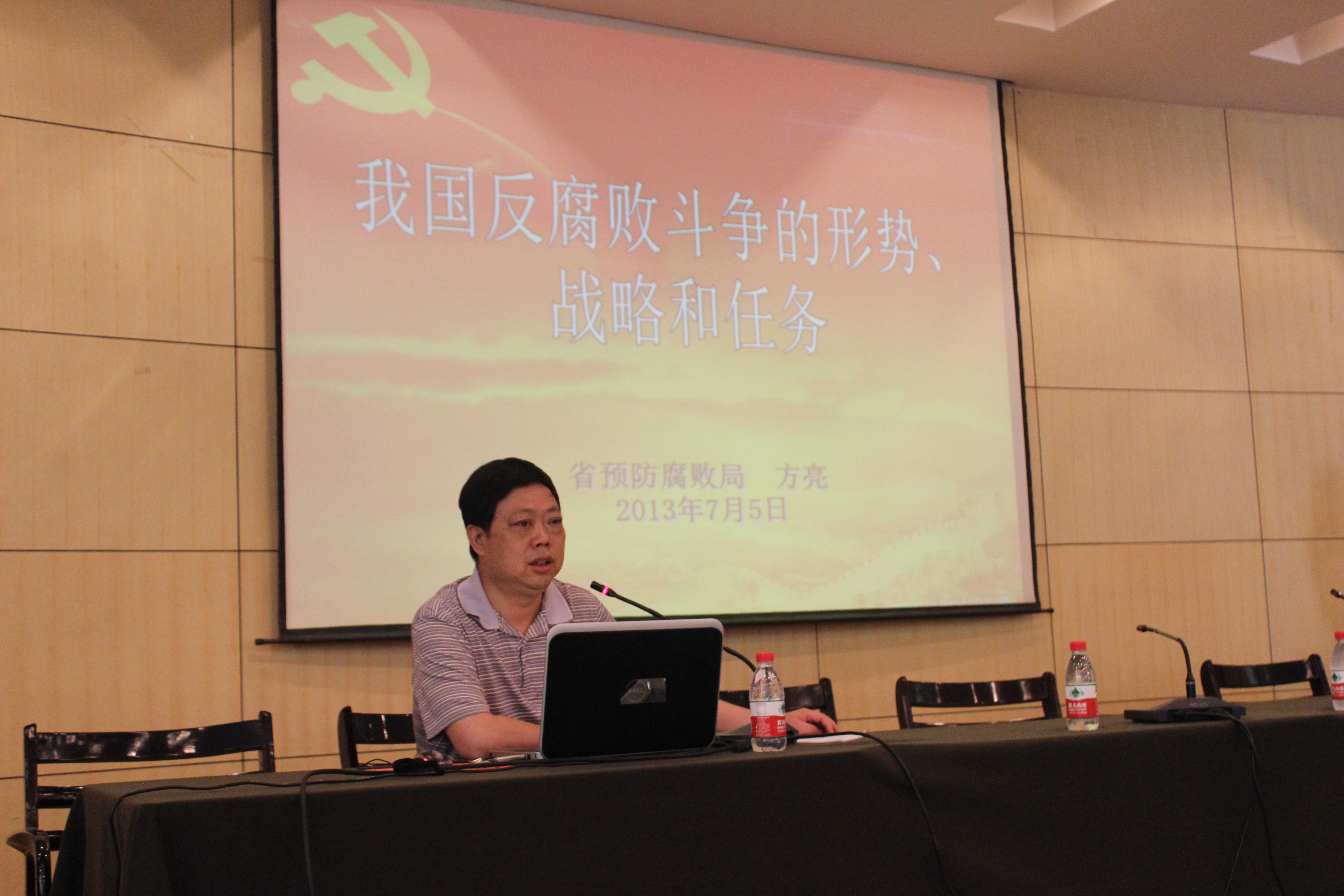 邀请,甘肃省防腐反腐局方亮副局长在学术图书馆报告厅作了一场题为“我国反腐败斗争的形势、战略和任务”的专题讲座,报告会由院长张文礼教授主持。鲸鱼直播