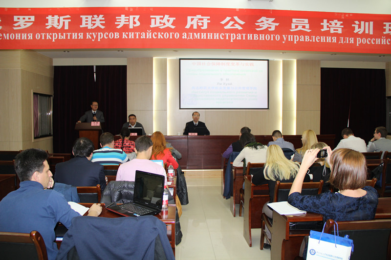 李怀教授为俄罗斯公务员培训班作了题为《中国社会保障制度变革与实践》的专题报告。黑龙江大学赵为教授担任了本次报告的翻译。