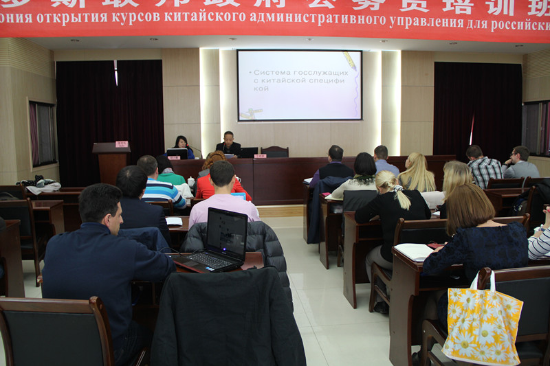 报告中,丁兴亚副局长介绍了我国公务员制度产生的历史演变、现状以及与西方国家公务员制度的异同,尤其是对我国现行的公务员选拔、使用、退出以及奖惩等机制进行了全面讲解,并结合我省实际,就公务员队伍的组成、规模等情况做了介绍。最后,丁兴亚副局长与俄方学员们进行了现场互动交流,对俄罗斯学员们提出的相关问题问题作了详细、耐心的解答。