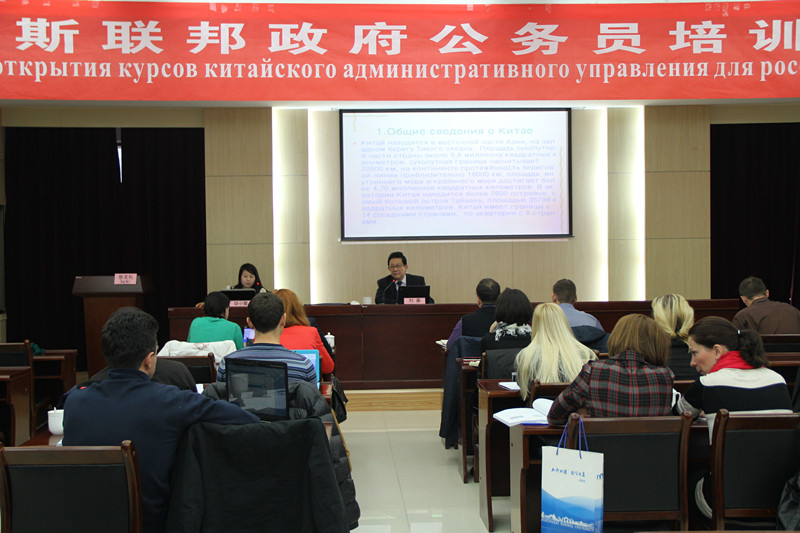 MPA导师刘基教授为俄罗斯联邦政府公务员培训班作了题为《中国基本政治制度与政府职能转变》的专题报告。外国语鲸鱼直播