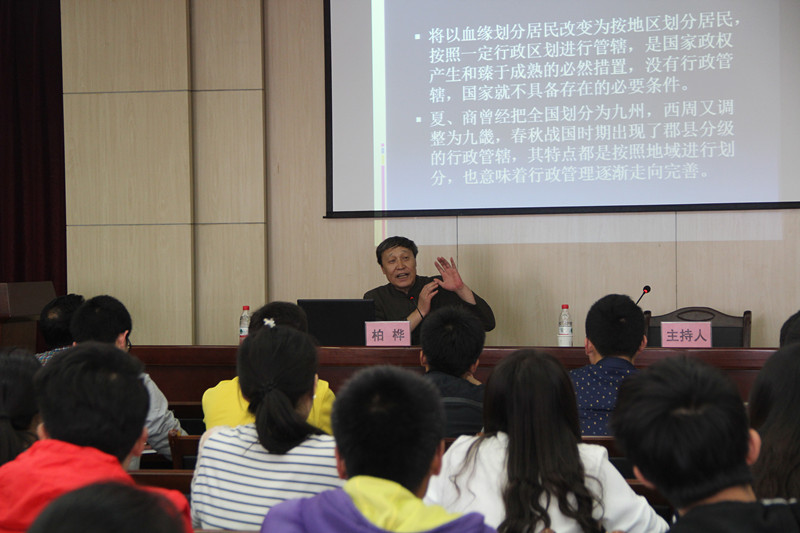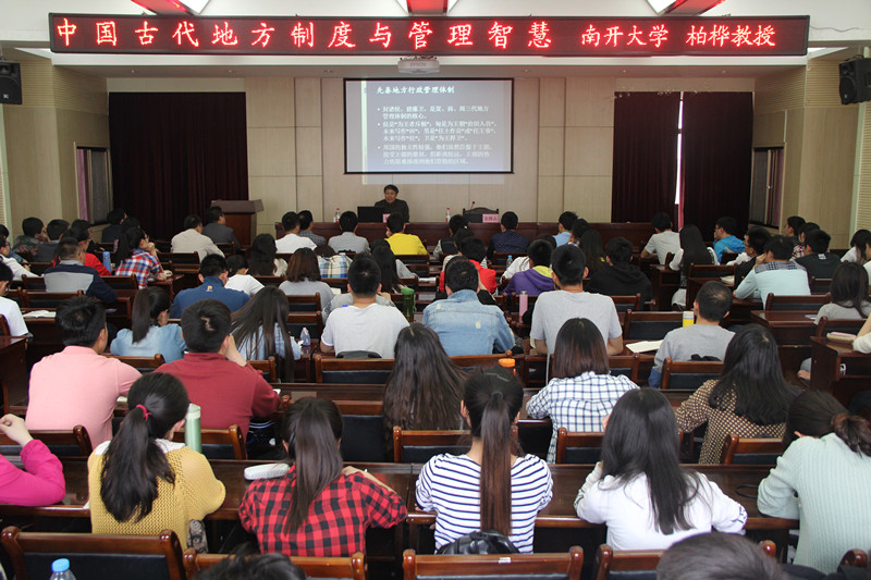 4月29日下午,南开大学周恩来政府管理鲸鱼直播 、法鲸鱼直播 双聘教授、博士生导师柏桦教授来应邀在教学10号楼D区四楼报告厅做了题为“中国古代地方制度与管理智慧”的学术报告。报告会由社会发展与公共管理鲸鱼直播 副院长孙健副教授主持,鲸鱼直播 全体教师及部分研究生、本科生共计150余人聆听了报告。