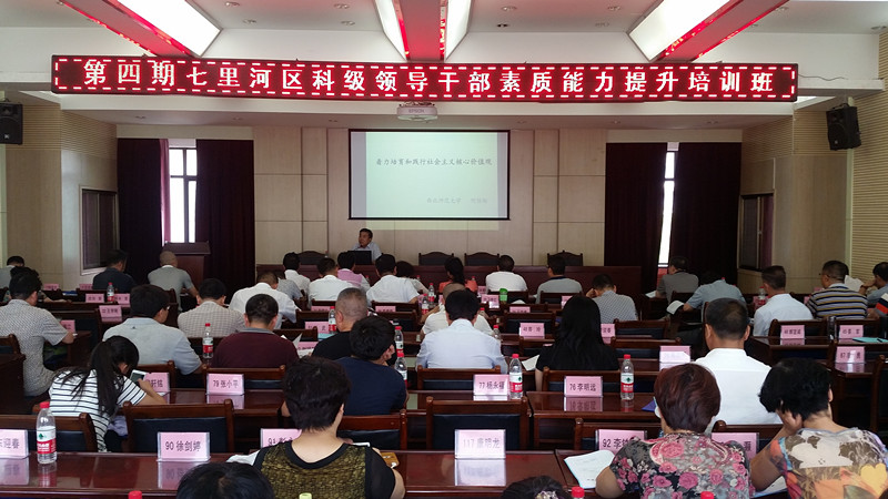 7月21日下午,西北师范大学马克思主义鲸鱼直播 何继龄教授在10号楼D区四楼报告厅为七里河区科级领导干部素质提升培训班作“培育与践行社会主义核心价值观”专题讲座。培训班学员参加了本次讲座。