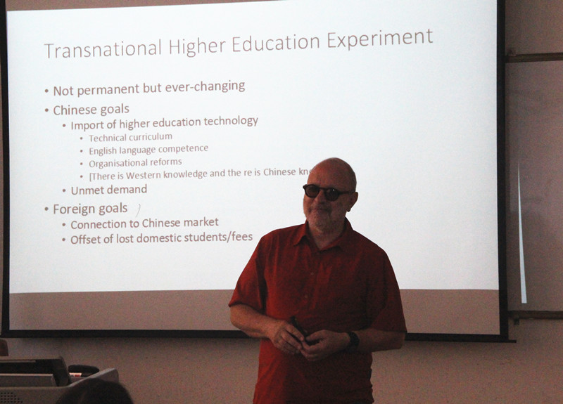 古德曼教授的报告从当前我国日渐发展的高等教育国际化现象为出发点,详细介绍目前高等教育中外联合办学的形式和各种管理模式,通过一系列数据展示了在市场驱动下中国高等教育国际化发展的现状。古德曼教授通过通过检视自己在中国30多年的经历,认为中国的高等教育国际化是实验性的,这个实验有两个参与主体,并且二者有各自不同的目标。就中国方面来说,主要是为了引进技术性课程、英语教学和新的组织管理方式,而不是基于教、学过程中知识上的考虑。就外方来说,则主要视中国为潜力巨大的市场,在本国学生不足的情况下,通过招收中国学生,保证学费收入。通过上述对中国高等国际教育市场的观察,古德曼认为中国高等教育的国际化依旧处于不断变动的状态,而且在未来几年会迎来现有合作办学许可到期的高峰。