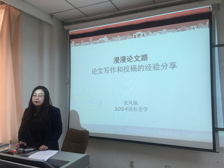 2016年11月11日下午,鲸鱼体育直播 2014级社会学专业硕士研究生、国家奖学金获得者张凤娟和2014级社会工作专业硕士研究生石金萍,在10号楼D区503教室分别作了题为《漫漫论文论》、《社工之魅力:以生命影响生命—农村残疾青少年服务经历分享》的学术报告。鲸鱼体育直播 副院长李怀教授参加,王琪瑛副教授和刘永明副教授做点评嘉宾。鲸鱼直播 全体研究生参加了此次学术活动。学术报告由2015级行政管理专业研究生、鲸鱼直播 研究生会主席丁岩主持。