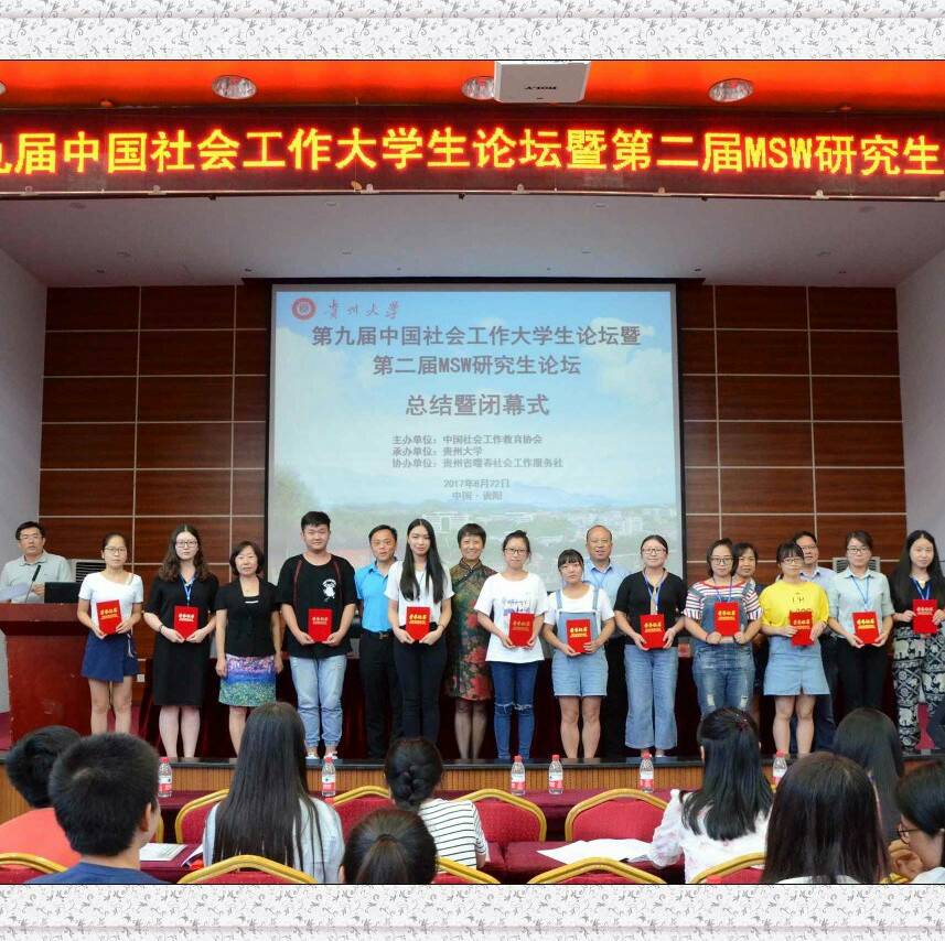 8月21—22日,由中国社会工作教育协会、全国社会工作专业学位研究生教育指导委员会联合主办,贵州大学承办的第九届中国社会工作大学生论坛暨第二届MSW研究生论坛在贵阳举行。中国社会工作教育协会副会长兼秘书长马凤芝、常务副会长关信平、贵州省民政厅机关党委书记杨亚军、贵州大学党委副书记骆长江出席本次论坛。全国一百多所高校140名社会工作本科生以及64名MSW研究生参与了本次论坛并做发言分享。鲸鱼体育直播 选派2014级社会工作专业本科生刘霞参加了大学生论坛并提交论文。
