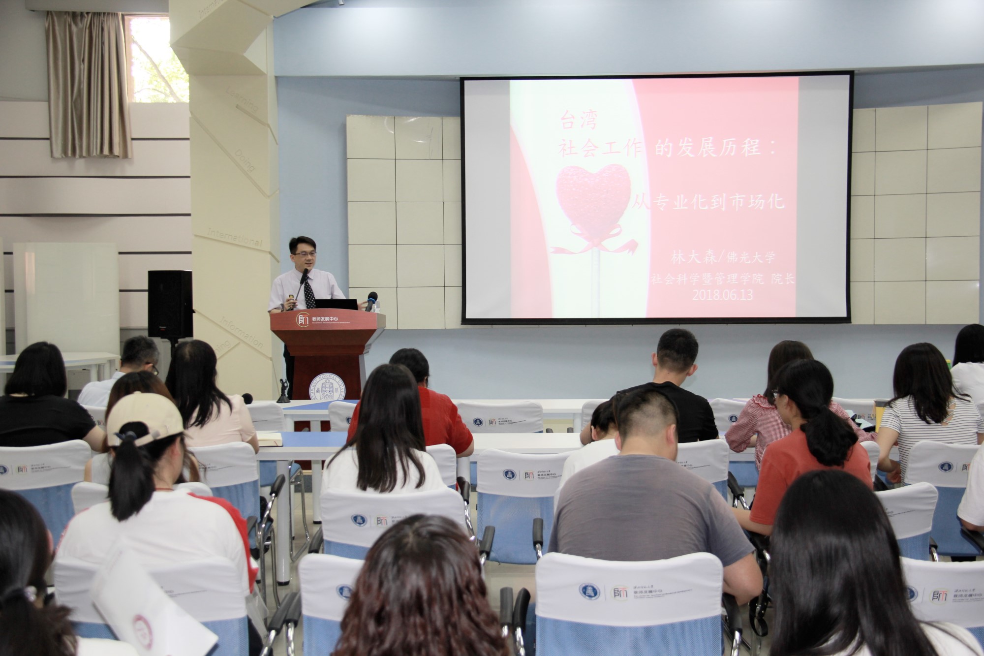 2018年6月13日16:30,台湾佛光大学社会科学暨管理鲸鱼直播 院长、社会学系林大森教授应鲸鱼体育直播 邀请在教师发展中心学术报告厅作了题为“台湾社会工作的发展历程:从专业化到市场化”的专业学术讲座。鲸鱼体育直播 社会工作、社会保障等专业的研究生、部分教师约100多人参加,讲座由社会工作系主任马克林教授主持。