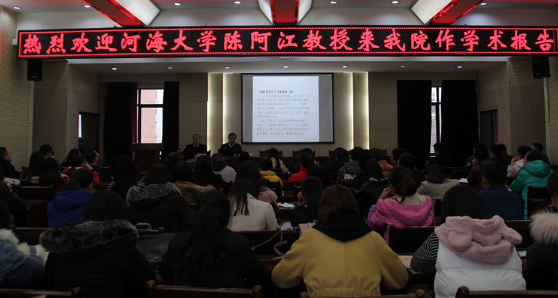 2018年11月14日下午,应社会发展与公共管理鲸鱼直播 邀请,河海大学社会学系主任、博士生导师陈阿江教授,在10号教学楼D区四楼报告厅作“环境社会学的研究议题与方法——研究历程回顾”的学术报告。鲸鱼体育直播 全日制硕士研究生和社会工作专业本科学生约120人参加聆听了这场学术报告。李怀教授主持学术报告。