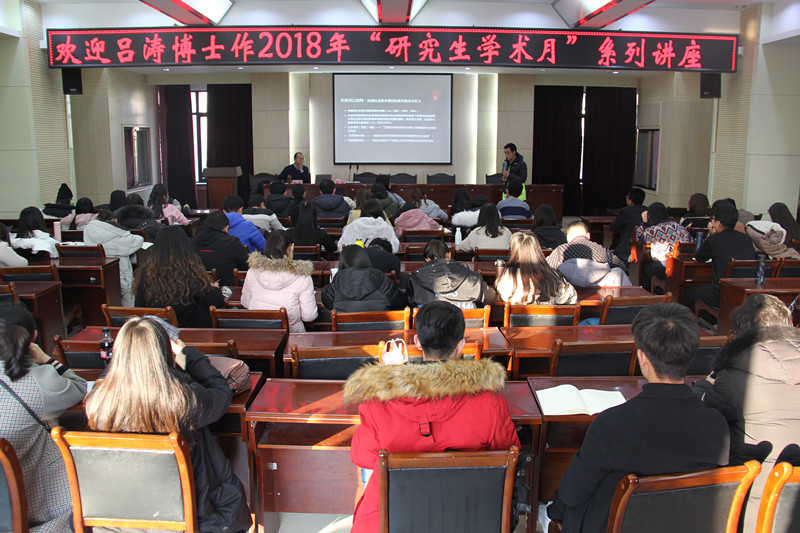 2018年12月17日下午,鲸鱼体育直播 在10号教学楼四楼报告厅开展2018年“研究生学术月”系列讲座,鲸鱼体育直播 副教授吕涛作了“同质性偏好、社会影响力还是条件效应?—社会资本的条件性来源与回报”的学术讲座。鲸鱼体育直播 全日制研究生约120人参加聆听了这场学术报告,报告由李怀教授主持。