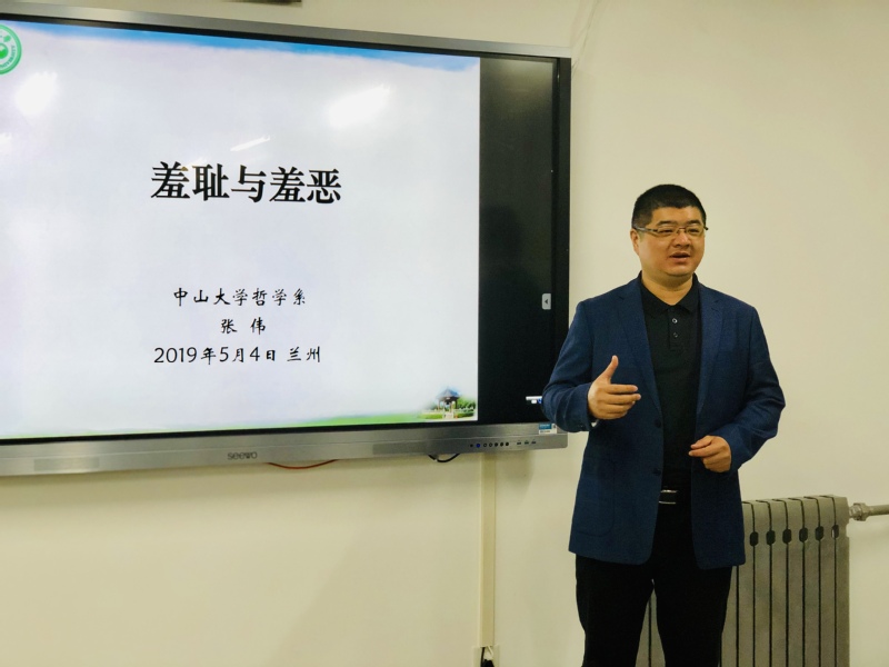 5月4日晚上,应西北师范大学哲学鲸鱼直播 邀请,中山大学哲学系主任张伟教授在田家炳教育书院410会议室作了题为“羞耻与羞恶”的学术报告。报告会由哲学鲸鱼直播 胡好副教授主持,兰州大学和我校部分师生参加了本次报告会。