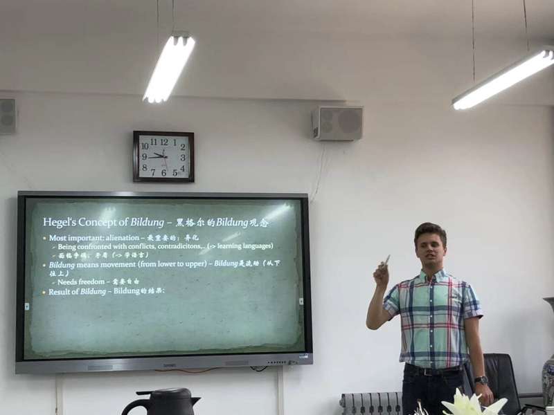 6月1日上午,应师庭雄副院长邀请,兰州大学德国留学生Sascha(来自德国弗莱堡)在田家炳教育书院410会议室作了题为“德国哲学的养成教育——在绝对约束和完全自由之间”的学术报告。报告会由哲学鲸鱼直播 孙文高博士主持,兰州大学和我校部分学生参加了本次报告会。