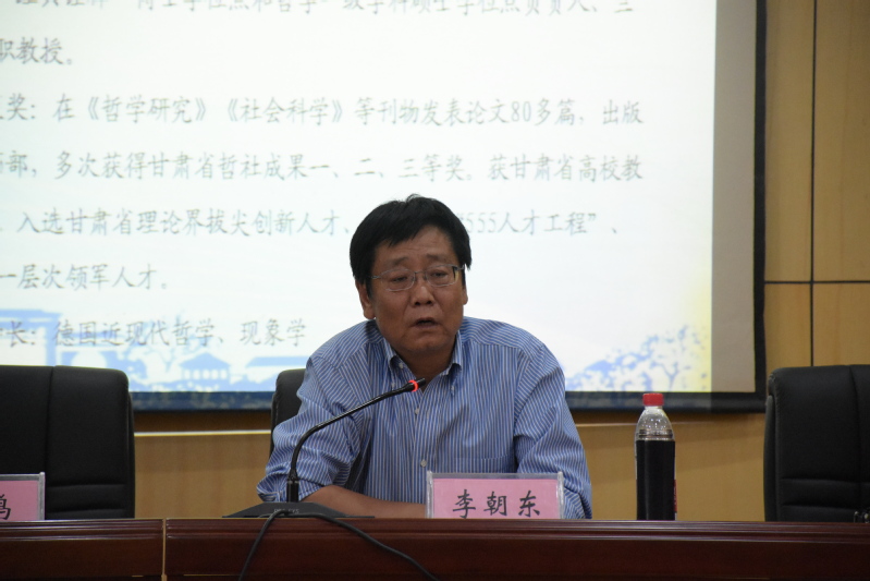 西北师范大学副校长李朝东教授在讲话中强调,伟大的理念培养伟大的人,哲学是思想的事业,是元科学。李朝东副校长指出,要深刻领会习近平总书记关于哲学社会科学重要性的讲话精神,“一个没有发达的自然科学的国家不可能走在世界前列,一个没有繁荣的哲学社会科学的国家也不可能走在世界前列”。勉励新生要胸怀家国、志存高远,要多读书,读经典、悟真理,做新时代哲学社会科学工作者,为实现民族振兴、“中国梦”贡献自己的力量。