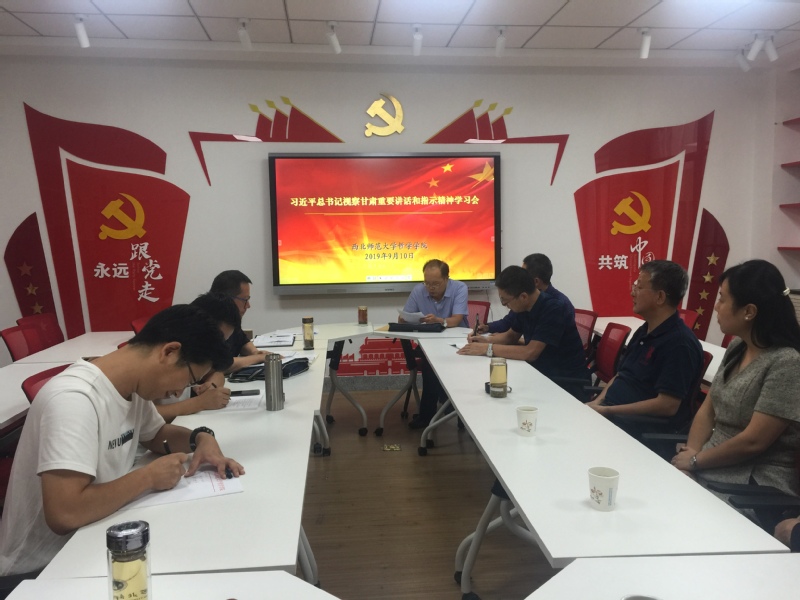 李书记向全体教师传达学习了习近平总书记视察甘肃重要讲话和指示精神,通过学习习近平总书记关于脱贫攻坚、全面建成小康社会、新一轮西部大开发、生态环境保护、保障和改善民生、“不忘初心、牢记使命”主题教育等工作的指示精神,与会老师表示受到了深刻教育与启发,并发表了自己的学习体会和感言。