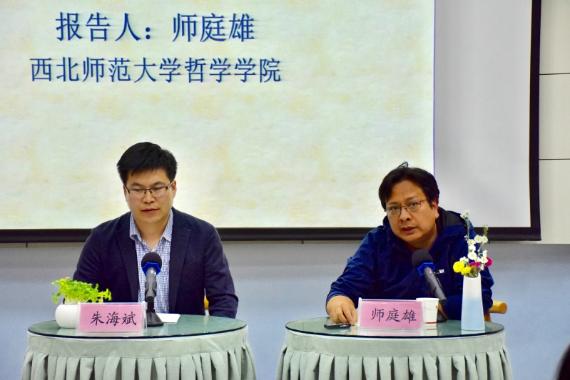 2019年9月24日晚,由西北师范大学哲学鲸鱼直播 、中和集团、社科处与教师发展中心联合主办的“哲学沙龙——中和论道”第五十八期在西北师范大学教师发展中心如期举行。本期主题为“《形而上学》释义”。由西北师范大学哲学鲸鱼直播 副院长师庭雄博士主讲,朱海斌博士主持。甘肃省人大常委会副主任陈克恭,西北师范大学副校长李朝东教授,甘肃省委党校张堡教授,音乐鲸鱼直播 李莉副院长,国际文化交流鲸鱼直播 副院长杨同军教授,哲学鲸鱼直播 姜宗强副院长、王金元教授、贺更粹博士、胡好博士、张立恩博士以及来自各个鲸鱼直播 的众多哲学爱好者参加了此次学术活动。