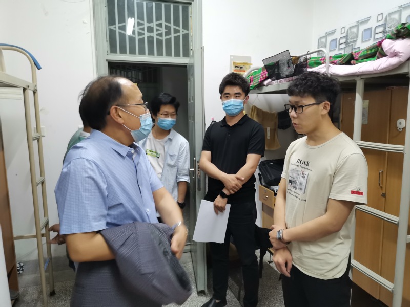 514日、20日、21日、22日,哲学鲸鱼直播 学生分级错时错峰返校,鲸鱼直播 领导鲸鱼直播 领导班子、辅导员、班主任坚持学生返校的第一天到宿舍看望慰问,帮助协调解决学生宿舍存在的各种问题。副书记、辅导员联合班主任在学生返校的第二天召开班会,强调疫情防控和安全工作,全面全方位打赢校园疫情防控阻击战。