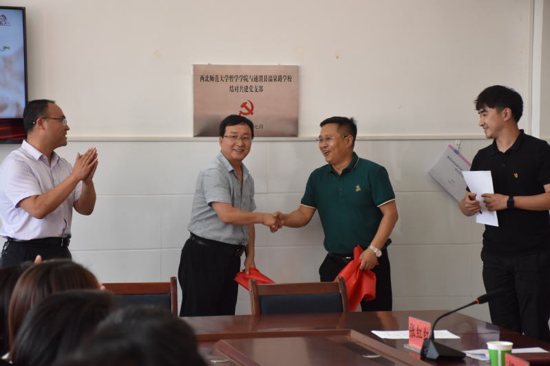 721日下午,在通渭县温泉路学校举行了支部共建签约揭牌仪式暨社会实践活动座谈会。鲸鱼直播 社会实践小分队师生代表、通渭温泉路学校教师代表共计30余人参加了座谈。在会上,通渭县温泉路学校党支部书记张红红与鲸鱼直播 学生第二党支部书记梁凯博共同签订了党支部共建协议,通渭县教育局党组成员、教育党工委副书记陈启明与鲸鱼直播 党总支副书记黄长军为结对共建党支部揭牌。本着“优势互补,携手共建”的原则,两个支部结对共建,积极探索高等学校与基础教育共促党建、共谋发展的新思路。与会师生代表在会上纷纷发言,协商推进支部共建、教师培训、社会实践等落实落地的长效机制。