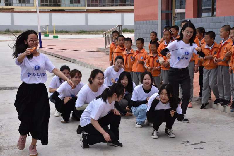 在支教活动中,我们为小学生规划了“智慧课堂”“励志课堂”和“感恩课堂”等专题板块,设计了“精灵总动员”“科技魔法屋”“感恩有你”“真情告白”“感恩宣誓”等八个模块30余项主题活动,通过游戏式、启发式的途径和形式,寓教于乐,激发小学生学习兴趣,引导小学生感恩亲情、快乐成长,激励小学生从小立志向、修品行、练本领。