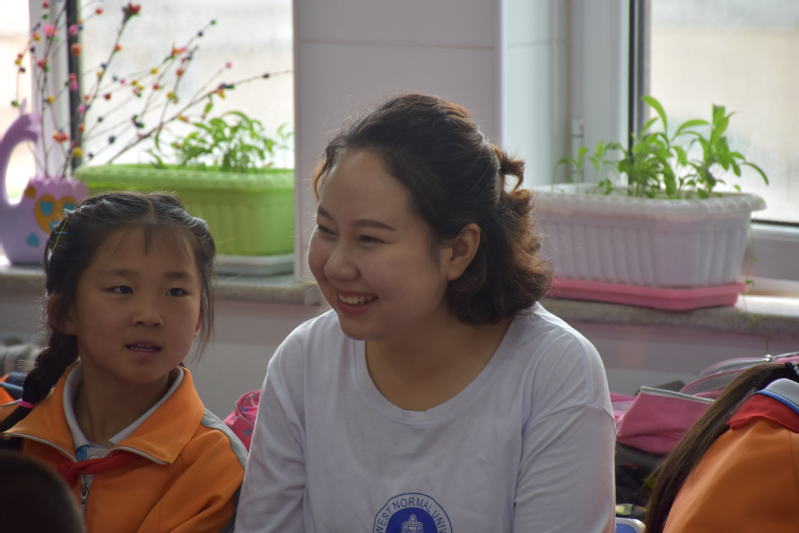 2018级硕士研究生吕舒媛说:“通渭县温泉路学校的孩子们就像一首不知疲倦的歌,唱响了每一个人内心深处的天真烂漫,也想陪他们一起看细水长流,也想与他们一起遨游知识的海洋,也希望他们茁壮成长,始终拥有一颗纯真的心。”