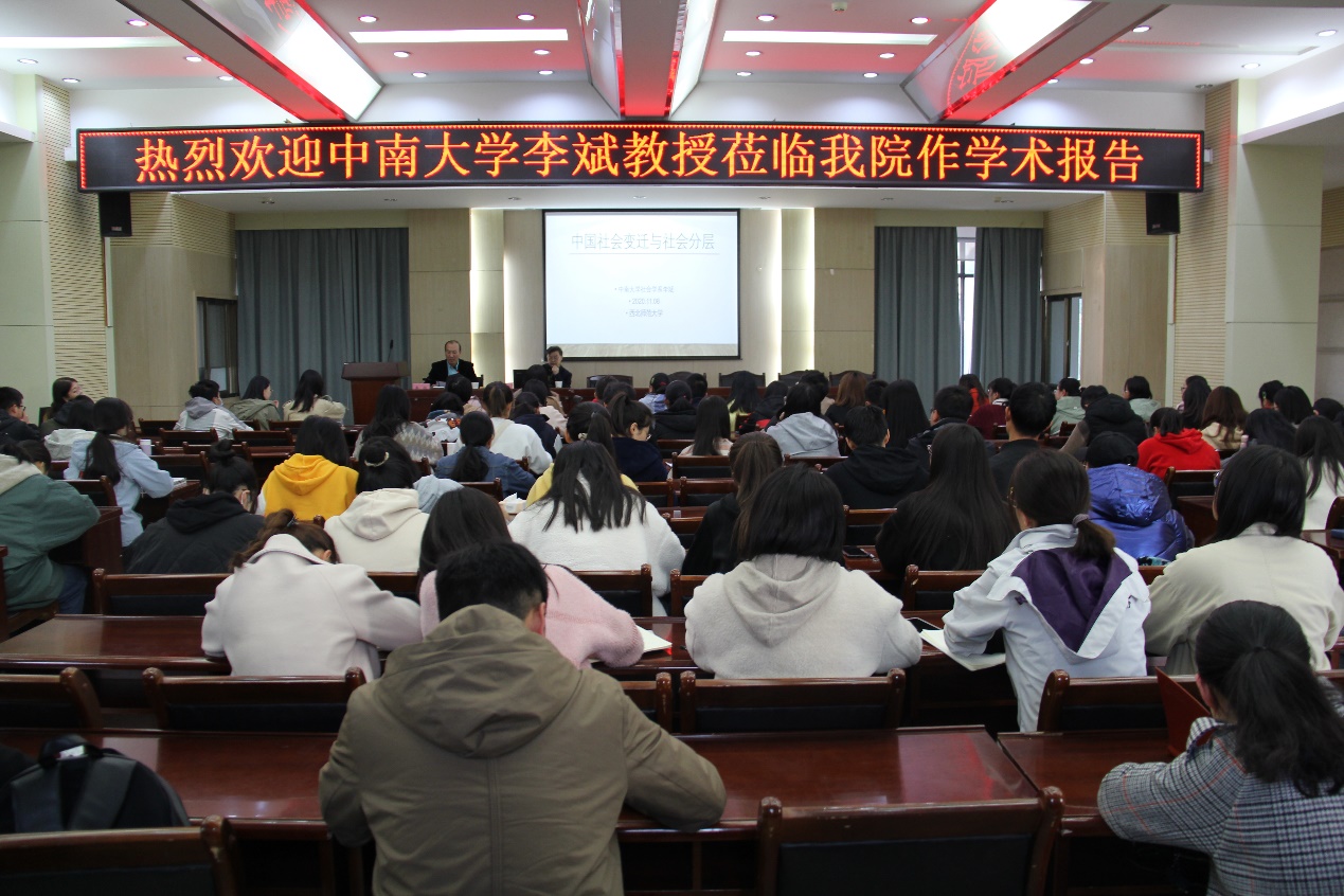 2020年11月8日上午,应鲸鱼直播 邀请,中南大学李斌教授莅临鲸鱼体育直播 在10D四楼报告厅作学术讲座,主题为“中国社会变迁与社会分层”,社会发展与公共管理鲸鱼直播 全体研究生、本科生参加了此次学术讲座。本次讲座由李怀教授主持。