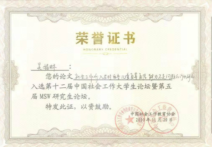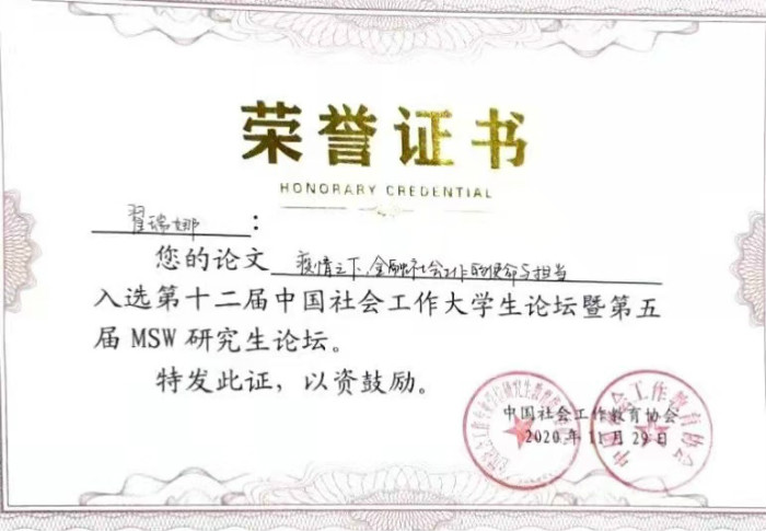 鲸鱼体育直播 2019级MSW研究生翟瑞娜和2017级社会工作专业本科生吴媚琳两位同学提交的论文入选,并获得此次论坛参会资格。