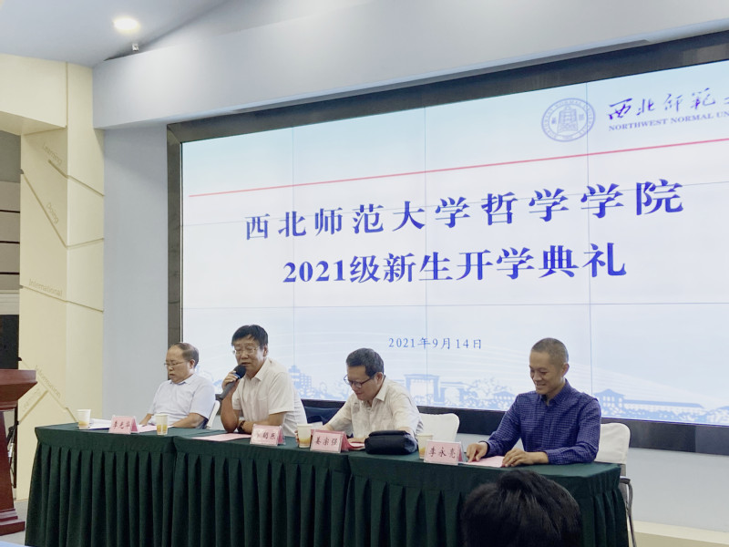 最后,学校副校长李朝东教授讲话。他从更高的层面、更加专业的视角,对大家如何全面成长成才提出了良好的建议和殷切的期望。他在讲话中提到,同学们现在开启大学学习生活新征程,第一,要转变观念,改变学习态度和习惯,尽快熟悉大学生活,自立自强,尽快成长为德智体美劳全面发展的社会主义建设者和接班人,成长为有自我责任承担能力的人,遵照老师们的思想指引,用好学校图书馆的资源,培养自学和阅读的能力,找准读书的方向,把握探寻思想的路径。此外,还要积极组织和参加各类读书会和学习小组,养成良好的班级学风。第二,从事哲学学习和思考,需要保持好奇心,这是思想产生的源初动力,一切学科最终都要回归到哲学的高度,才能成为真正的科学。希望大家在“爱智慧”的思想指引下,增强思想定力,养成主动思考的习惯,自由的接受、探究并发现真理性的知识,行动上遵守公共生活的价值原则和道德准则,提升个人品味和审美,以达成至善和真正的自由—真善美的统一。第三,伟大的理念培养伟大的人,同学们要有长远的眼光,在研读经典中装备人文知识,在拓展思维训练中开阔对世界和中国文化的宏观视野,形成全新的哲学观念,成为人生的竞技场上的的强者,在未来的事业中取得更大的成就。