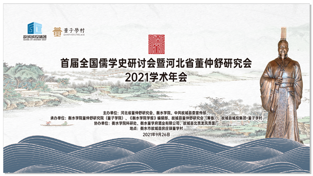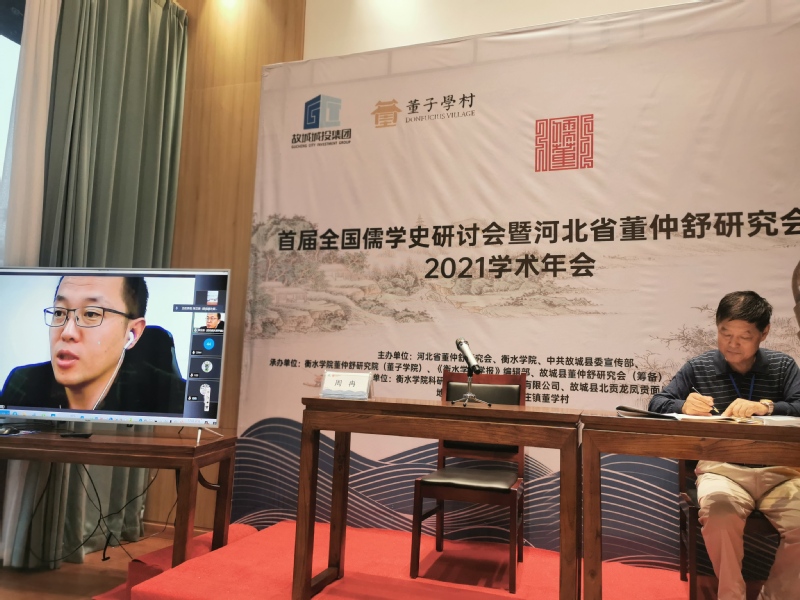 2021年9月26日,“首届全国儒学史研讨会暨河北省董仲舒研究会2021学术年会”在河北故城县董子学村召开,鲸鱼体育直播 张立恩老师应邀参会,并以“《公羊传》、董仲舒、何休有关褒贬之诠释”为题作线上学术发言。本次活动,由河北省董仲舒研究会、衡水鲸鱼直播 、中共故城县委宣传部主办。