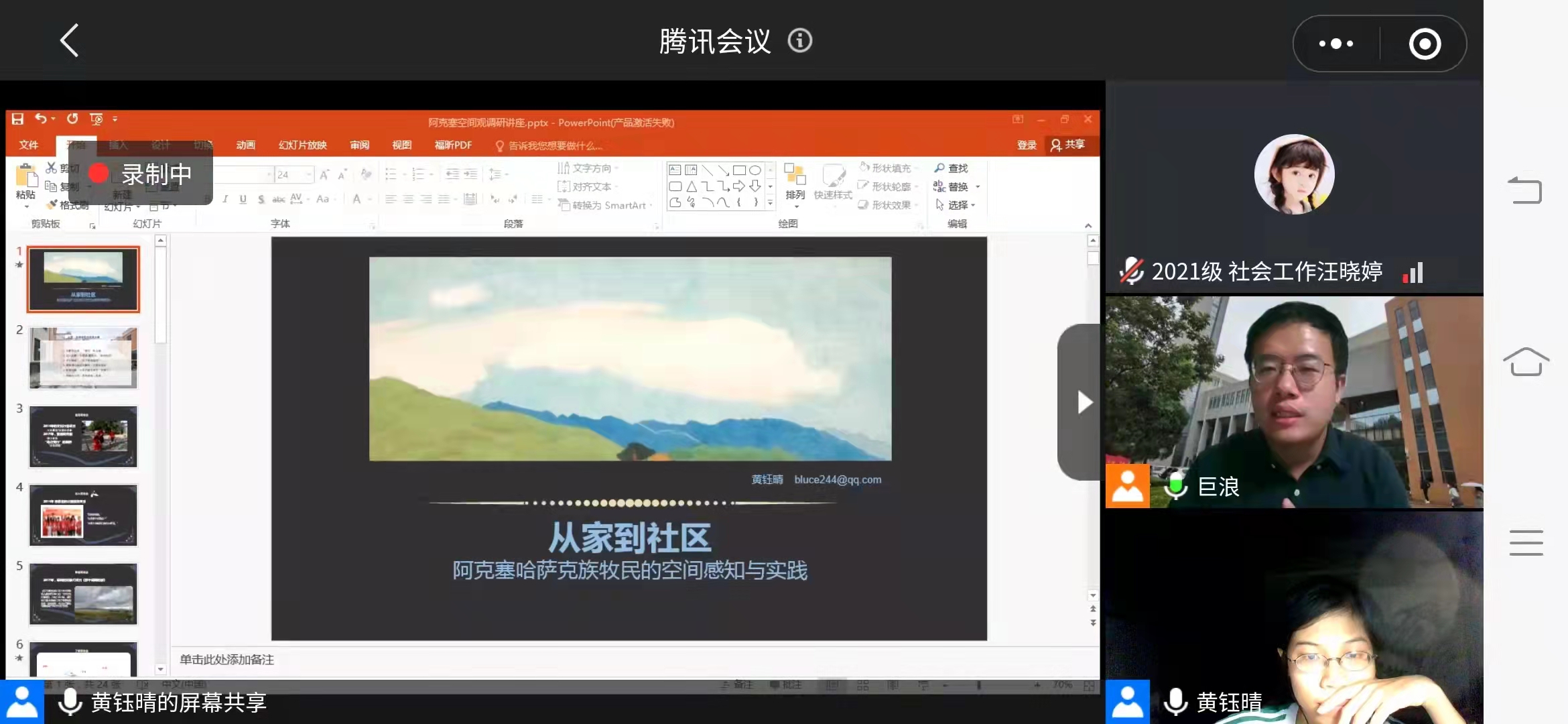 黄钰晴老师以自己的田野经历为主线,借用“认知图绘”理论,探讨变迁背景下阿克塞牧民的空间感知,以及这种感知如何在空间实践中具体呈现、推动群体行为、给社区互动与发展带来影响。