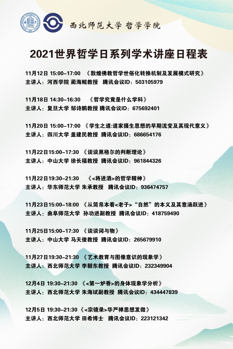 2021年世界哲学日系列学术讲座预告