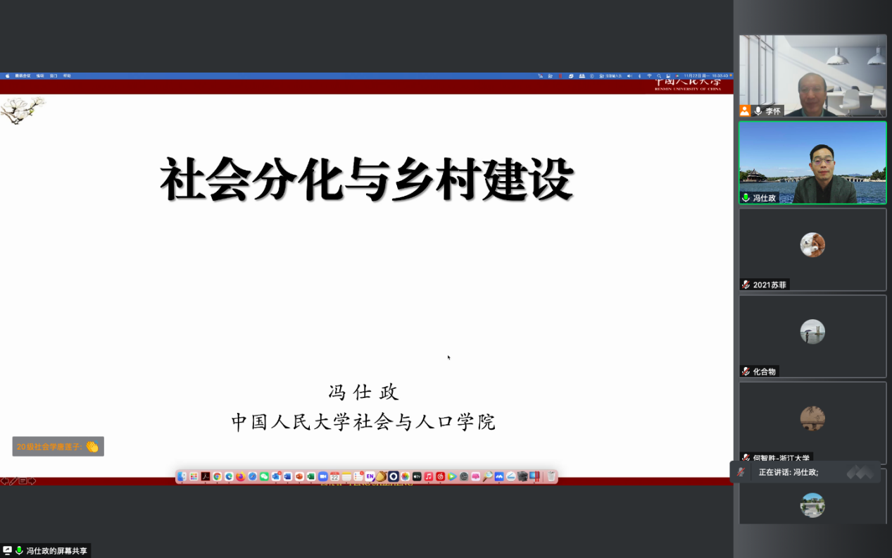 师生作题为“社会分化与乡村建设”的学术报告。本次报告由李怀教授主持,西安交通大学卢春天教授评议,五百余名校内外师生参加了本次讲座。