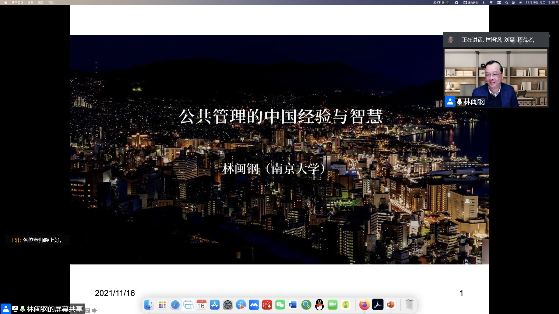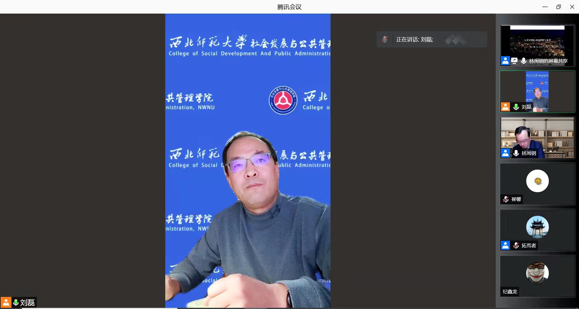 2021年11月16日晚,社会发展与公共管理鲸鱼直播 邀请南京大学林闽钢教授开展题为“国家治理的中国经验与智慧”的线上专题讲座。西北师范大学社会发展与公共管理鲸鱼直播 全体研究生和本科生参加了此次讲座。鲸鱼体育直播 刘磊副教授担任主持人,张文礼教授担任评议人。讲座正式开始前,林教授首先对鲸鱼体育直播 师生表达亲切的问候,并且期望疫情早日结束,大家能够回归正常的生活。