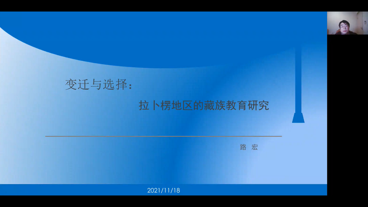 11月21日晚,兰州城市鲸鱼直播 教育鲸鱼直播 副院长路宏副教授在应邀在线上为鲸鱼体育直播 师生做了一场以“变迁与选择:拉卜楞地区的藏族教育研究”为题的学术讲座。本次讲座由鲸鱼体育直播 巨浪老师担任主持人,我校旅游鲸鱼直播 副教授种媛老师担任与谈人。社会发展与公共管理鲸鱼直播 师生共二百余人在线学习。
