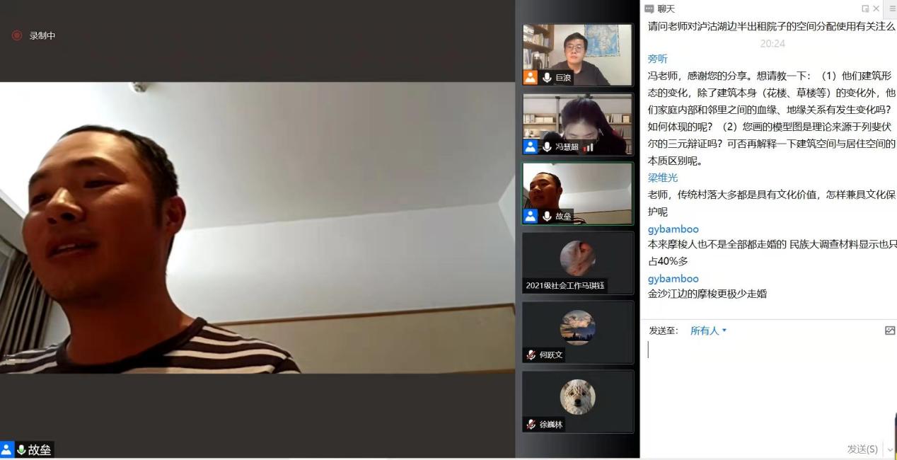 讲座结束之际,评议人顾磊老师谈到通过一部纪录片《The Mosuo Sisters》了解到摩梭民居,更加通俗的解释了关于遗产保护中的真实性原则。建议没去过泸沽湖地区的同学们可以通过纪录片了解冯老师所讲地区的社会环境。他提到现代性更换了以前传统的很多东西,但是也有很多不变的东西,变与不变是一个动态的过程。顾磊老师建议用流动真实性代替动态真实性可能会更有特色更加细腻。鲸鱼体育直播 学生也非常积极地提出问题和冯老师互动,冯老师也表示自己受到了很多启发,希望以后可以跟老师同学们有更深入的探讨与学习的机会。