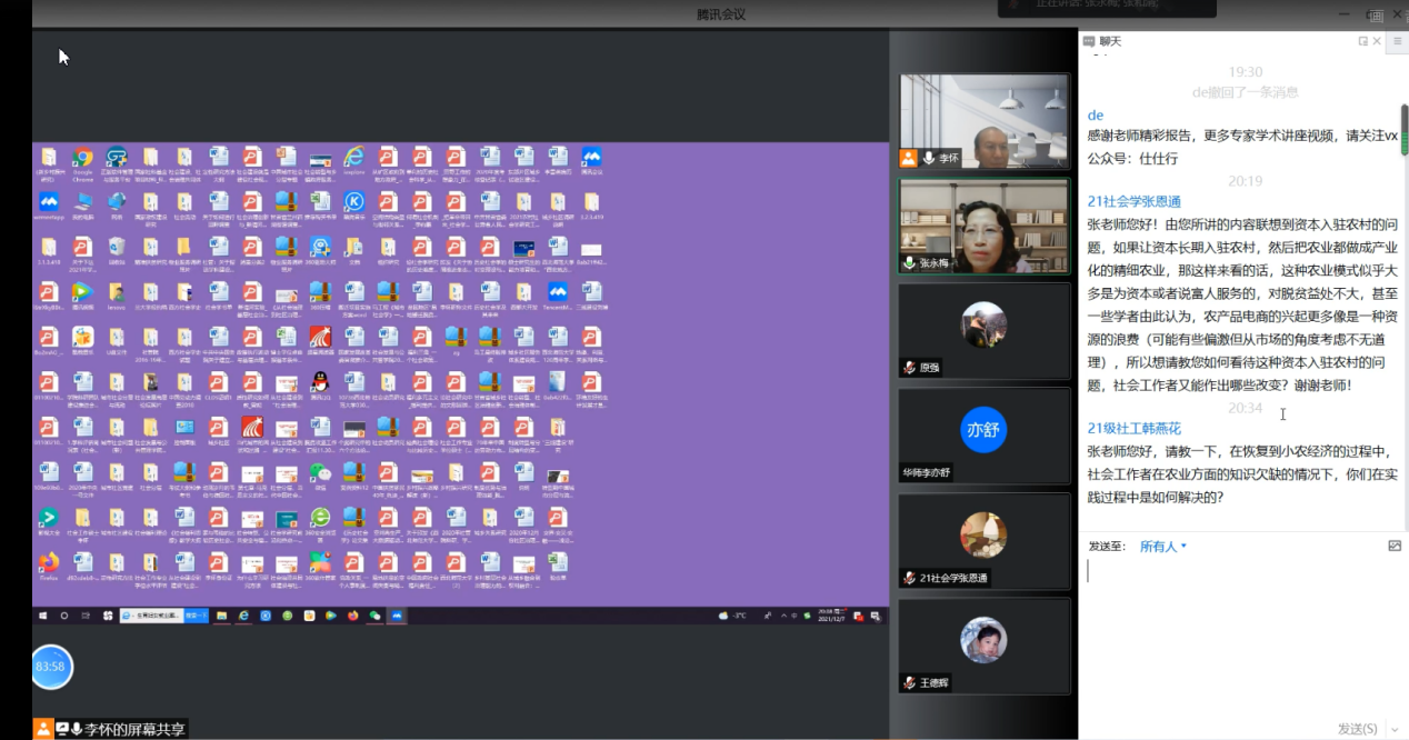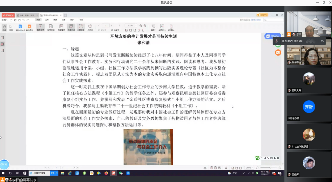 2021年12月7日晚,鲸鱼体育直播 邀请中山大学张和清教授为全院师生开展主题为“社会工作干预与中国乡村生态、生计和生活可持续发展的行动研究——以绿耕项目为例”的学术讲座。此次讲座由李怀教授担任主持人,兰州大学张永梅教授担任与谈人。三百余名校内外师生参与了本次讲座。