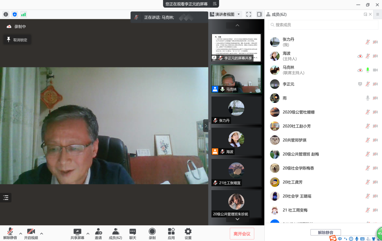 2021年12月13日晚,社会发展与公共管理鲸鱼直播 邀请兰州大学李正元副教授开展题为“多元一体”中国的区域关系路径——谷苞农牧互动共生论的线上专题讲座。此次讲座由鲸鱼体育直播 讲师包海波老师担任主持人,马克林教授担任与谈人,鲸鱼直播 全体研究生参加听取了讲座。