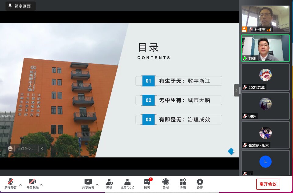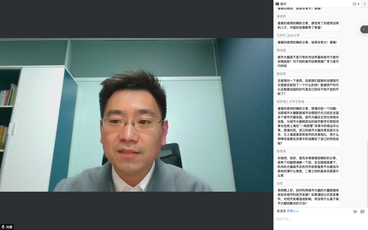 刘靖副教授开展题为“城市大脑赋能城市治理现代化——杭州城市大脑建设实践思考”的线上学术讲座。此次讲座由鲸鱼体育直播