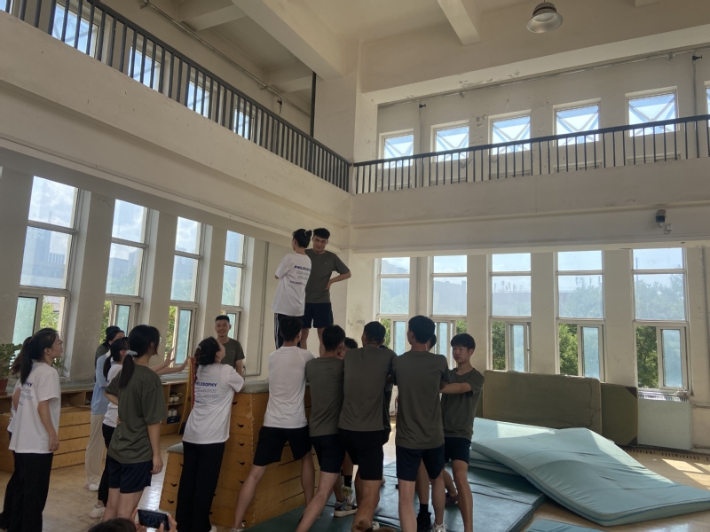 活动共分为体验项目和比赛项目。在“信任后倒”体验中,国防教育协会的退伍大学生们在台下组成坚固的“保护网”,参与活动的同学在一声声“请相信我们”的嘹亮口号中顺利完成任务。
