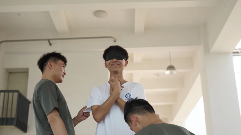 “荆棘排雷”主要考验参与者之间的默契和信任,要求一名队员在场外发出指令,另一名队员在指定范围内蒙眼完成规定动作。