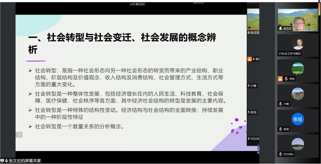 2022年7月6日晚,应鲸鱼体育直播 邀请,上海大学张文宏教授在腾讯会议上为鲸鱼体育直播 众师生带来了一场题为“百年中国社会转型的趋势、特征与机制分析”的学术讲座。本次讲座由李怀教授主持,校内外200余人在线学习。