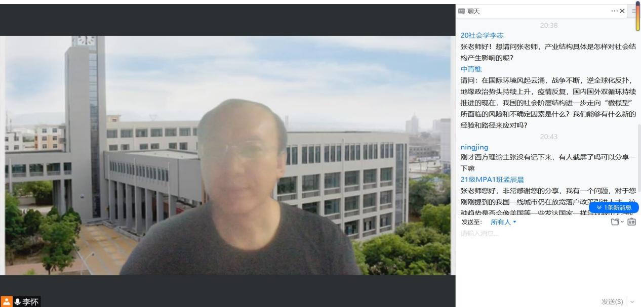 在交流环节,鲸鱼体育直播 师生与张老师进行热烈互动,张老师耐心予以回应,一一进行了深入回答。李怀老师对张老师的分享表示感谢,并对张老师的讲座内容做了简要的总结,他表示此次讲座的分享给大家在社会制度、社会变迁和社会发展等研究方面给予了很大的帮助,是一次非常宝贵的学习经历,进一步开拓同学们的学术视野、提高学术研究能力。