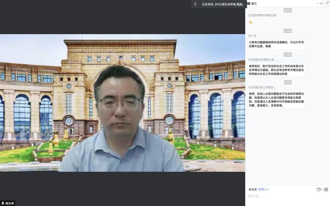 2022年9月25日下午14时,复旦大学顾东辉教授应邀为鲸鱼体育直播 师生带来了题为“社会工作的三项功能与八个关键”的学术讲座。本次讲座由李怀教授主持,鲸鱼体育直播 部分教师和2022级社会学类本科班、社会学研究生班、社会工作研究生班全体同学参加。