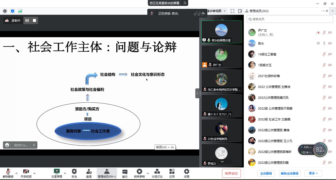 2022年10月19日19时,百廿校庆暨十年院庆校友论坛系列学术讲座第四场,由兰州大学焦若水教授开讲。焦老师为鲸鱼体育直播 师生作题为“‘愚夫愚妇’:社会工作的主体性反思”的学术讲座。本次讲座由尹广文副教授主持,甘肃政法大学公共管理鲸鱼直播 任文启教授作评议人,近三百名师生参加。