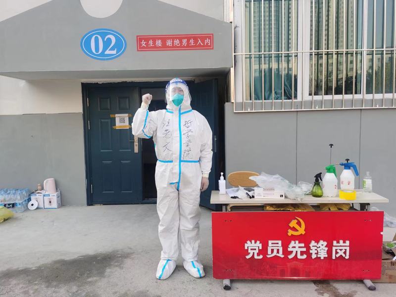 “初心明如炬,使命重于山。”在疫情防控的紧要关头,哲学鲸鱼直播 教职工闻令而动,从“三尺讲台”毅然投身“抗疫一线”。杜海涛、胡朝都、田希、孙圣四位老师积极响应学校疫情防控志愿者的招募,分别加入知行校区和兰天公寓工作专班,为学生送餐送水、清理生活垃圾、组织学生进行核酸检测。工作中不喊累、不抱怨,坚决服从专班的各项工作安排,倾心倾力地为学生提供服务和保障。