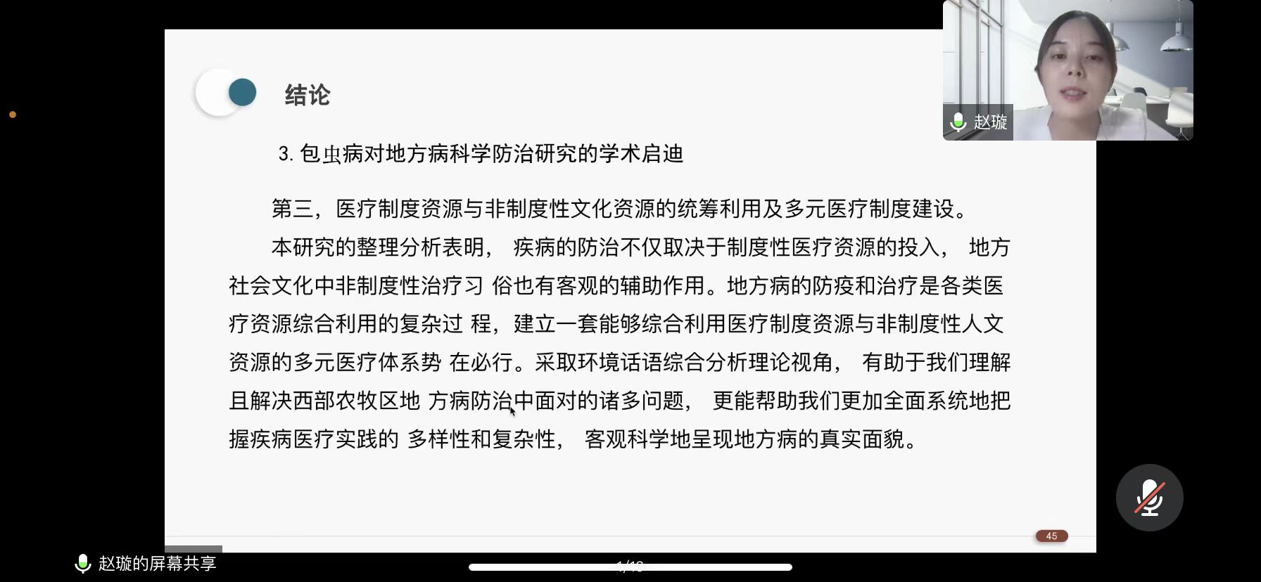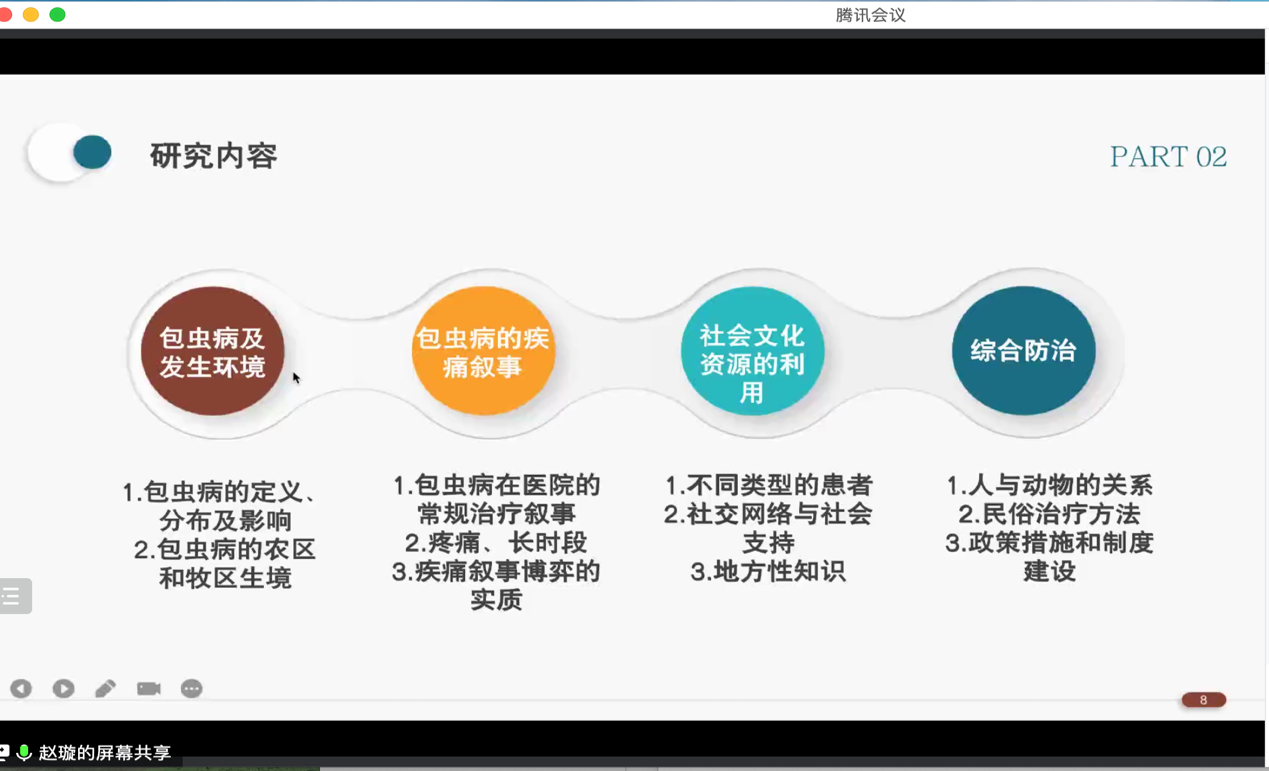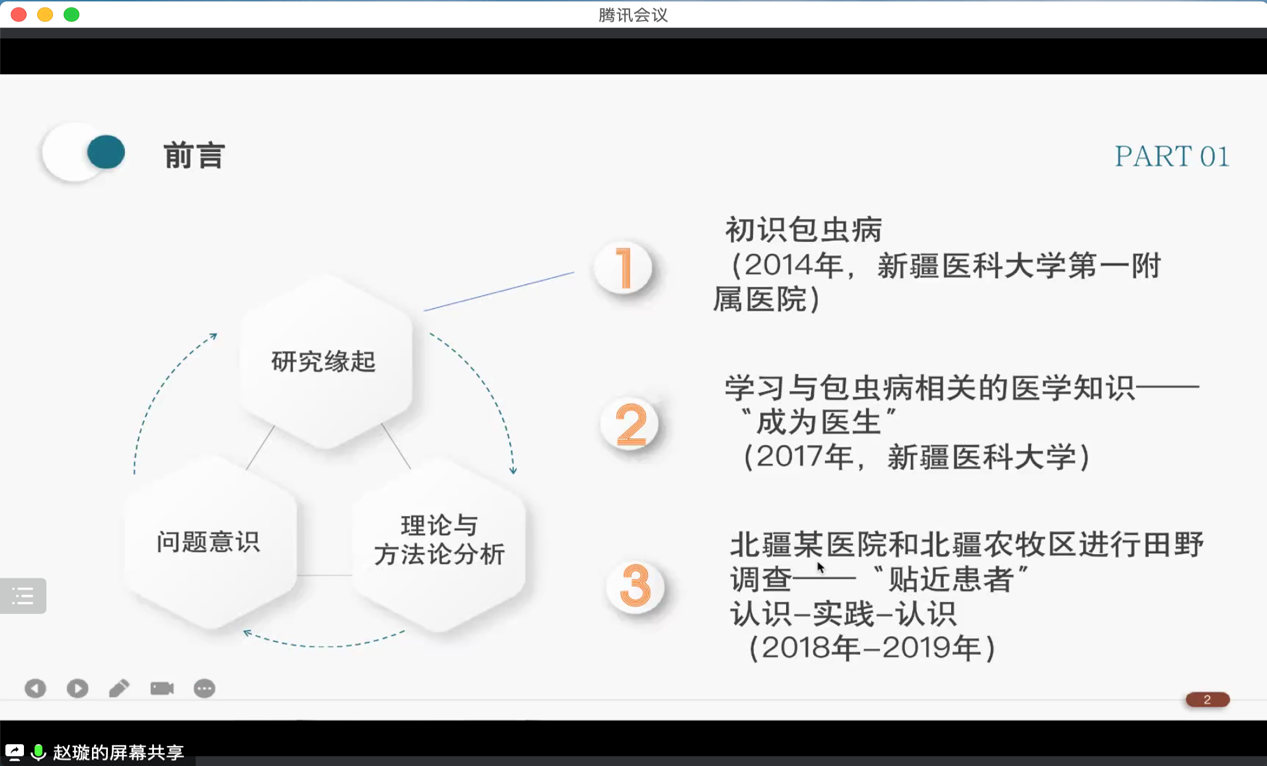 赵老师从生物医学的有用性和局限性、医患关系现状和国家卫生治理政策等三个层面总结了环境话语分析对包虫病为例的地方病科学防治研究的现实意义。