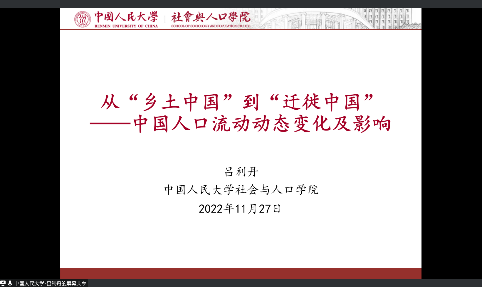 师生作题为“从‘乡土中国’到‘迁徙中国’—中国人口流动动态变化及影响”的讲座。本次讲座由王琪瑛老师主持,鲸鱼直播