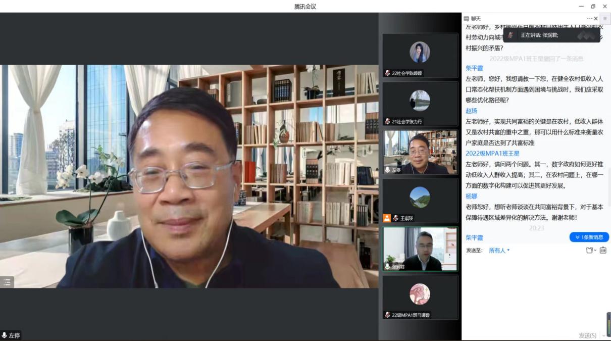 讲座尾声,左停教授与鲸鱼体育直播 师生进行了热烈地交流与讨论,并针对鲸鱼直播 师生们提出的问题进行了认真回应。随后,张老师结合自己的观点对左老师此次讲座作了点评。首先,张老师指出随着社会的发展,农村低收入人群的帮扶问题,成为了国家、地方以及各类人群的重要问题。长期的脱贫攻坚之后,我们国家全面建成了小康社会,但是,农村低收入人口的帮扶问题越来越成了全面乡村振兴、实现农业农村现代化和共同富裕等的重大问题中的重中之重。所以,从国家层面上,相近连续出台了一系列的政策,比如:左老师讲的《中共中央国务院关于乡村振兴和脱贫攻坚的有效衔接问题的意见》。2021年10 月,我们国家出台了实现农业农村现代化十四五规划。今年党的二十大,聚焦到共同富裕上,涉及到低收入人口的讲话,针对国家大政方针的落地及见效问题提出了相关规划。然后,张老师指出在农业农村现代化十四五规划里面,第八章第三节主要讲了健全农村低收入人口和欠发达地区的帮扶机制,总共讲了四个方面,提出了要动态监测分类帮扶,集中支持重点帮扶县,对西部地区160个国家乡村振兴重点帮扶县给予集中支持,加强财政转移支付,巩固脱贫攻坚成果和乡村振兴的有效衔接。最后,张老师提出怎么做才能将政策落地?能够对乡村振兴、农业农村现代化到共同富裕有所帮助,这是学者及学子应该认真思考的问题。针对政策怎样落地的问题,张老师指出左老师对低收入人口先做了一个学术的构建,从六个不同的方面,回答了什么是低收入人口。在此基础上,左老师又提出了六个维度的政策选项,针对不同的适用对象提出了创新性的可供选择的政策选项。这样才能真正把乡村振兴、农业农村现代化和共同富裕最难的低收入人口的相关问题精准到位,使得国家下一步的社会救助和反贫困的帮扶政策能够更加科学、合理、准确和具有操作性。张老师指出左老师的讲座精彩丰富,不仅对研究问题具有自己的学术思想和理论探讨,而且左老师对于研究现实热点及难点问题的路径逻辑,值得我们师生共同学习和共同探讨。