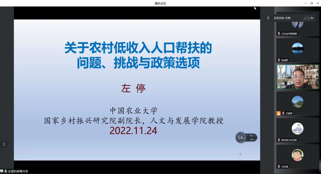 左停教授首先介绍了本次讲座具体从三个方面展开:一、引言:低收入人口帮扶的提出与重要意义;二、低收入人口帮扶的问题与挑战;三、低收入帮扶的政策选项。