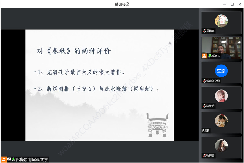 10月31日晚上,复旦大学哲学鲸鱼直播 教授、博士生导师郭晓东应邀通过腾讯会议为鲸鱼体育直播 师生作了题为“孔子与《春秋》”的学术报告。哲学鲸鱼直播 张立恩副教授主持报告会,校内外师生百余人参加此次报告。