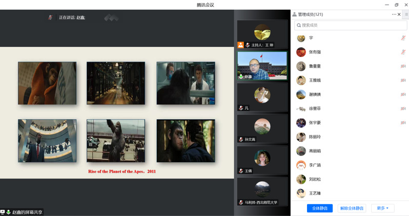 在讲座的最后,赵鑫教授依然以《猩球崛起》这部电影的内容,给我们留下了一个开放式的思考:我们人类的进化与发展有其自然的规律,那么人为的干预和改变我们的智力发展是否是可行的,这样会带来什么影响。这个思考也让同学们的视野从实验研究成果走向一个更加开阔的畅想。